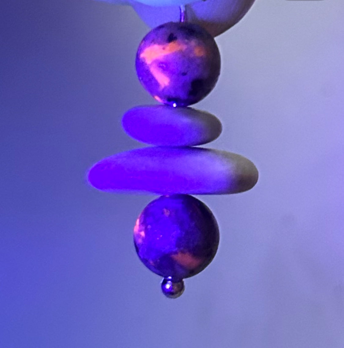Natural flat pebble cairn yooperlite UV glowing earrings rare from the northern shores of Lake Superior — hypoallergenic 925 sterling silver —french hook earrings — rubber backing