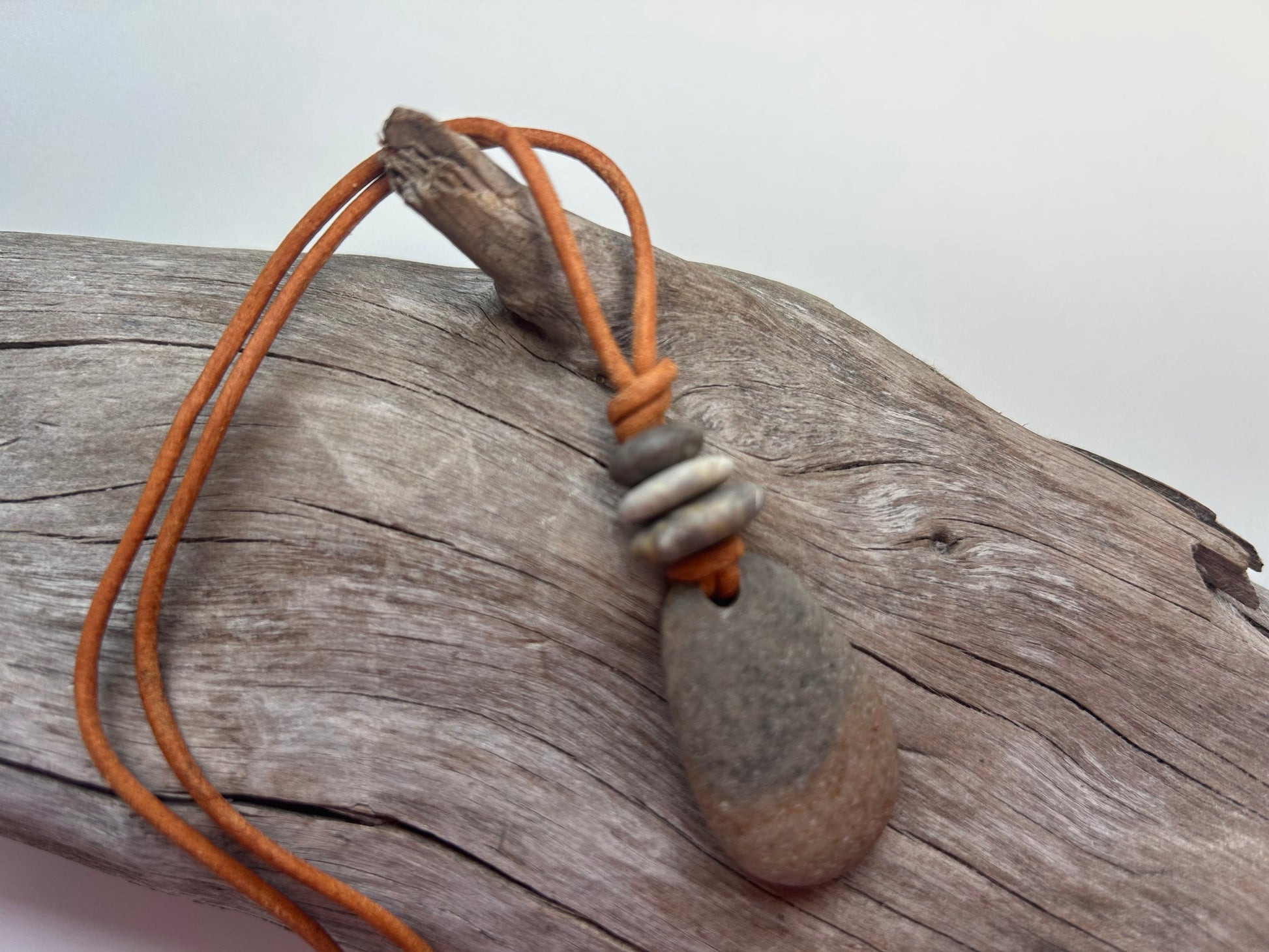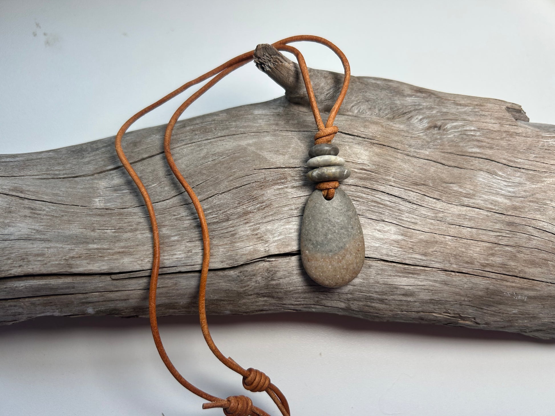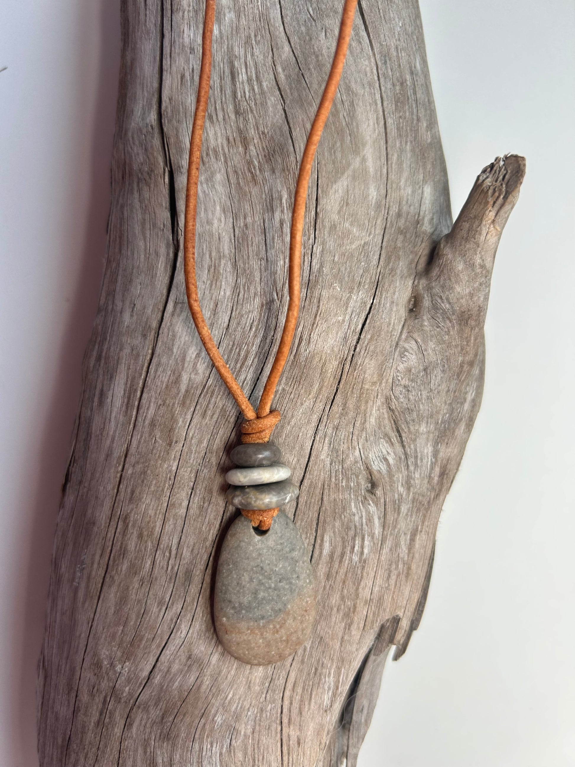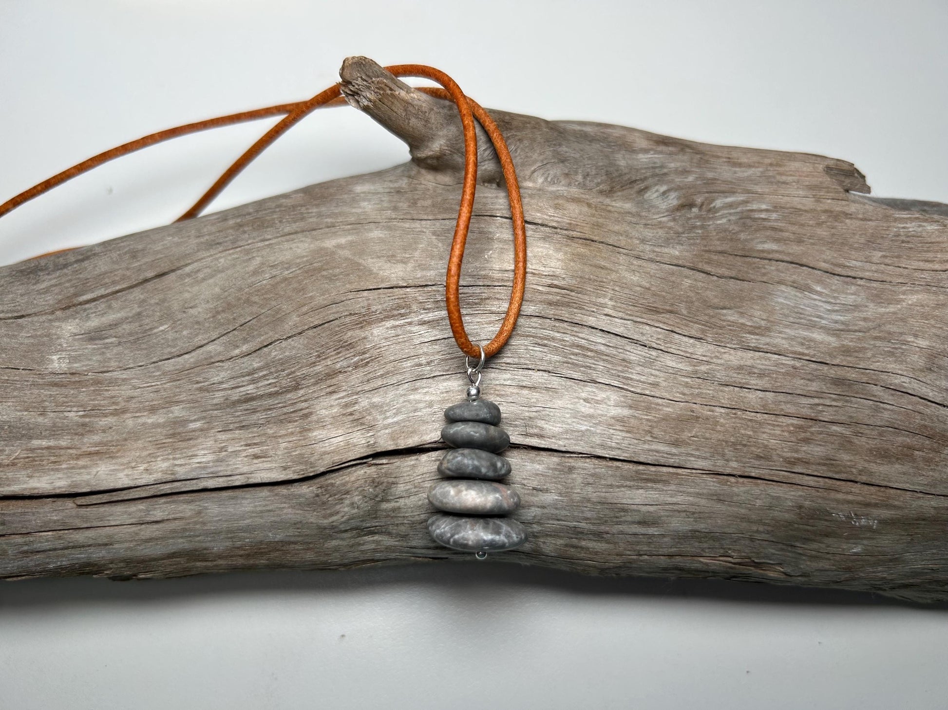 Lake Superior Genuine Leather Flat Cairn Stone Pebble Zen Boho Adjustable Necklace